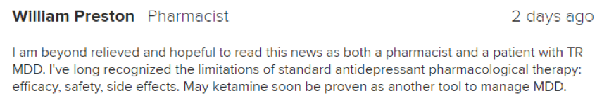 医药网2月18日讯 近日,美国食品药品监督管理局(FDA)小组联合投票批准艾氯胺酮鼻腔喷雾剂(28mg/次)可用于难治性抑郁症(TRD)的治疗。 精神药理学药物咨询委员会(PDAC)和药物安全与风险管理咨询委员会(DSaRM)专家小组以14:2(1票弃权)的投票结果,对艾氯胺酮的有效性及安全性表示了赞成。基于以前的研究结果以及FDA提出的风险评估和缓解策略(REMS),他们认为艾氯胺酮的益处大于其风险性。 抗抑郁症药物治疗现状 重度抑郁症(MDD)是一种严重的慢性精神疾病,主要表现为情绪低落、兴趣减低、悲观、思维迟缓、缺乏主动性、饮食和睡眠差等等;担心自己患有各种疾病,感到全身多处不适,严重者可出现自杀念头和行为。据估计,美国目前大约有1600万例MDD患者,每年发生自杀事件有4.1万余例,其中许多是因抑郁症未得到治疗或治疗不良所致。 这类患者的一线治疗方法主要有药物治疗及心理治疗。其中,口服抗抑郁药物包括选择性5-羟色胺再摄取抑制剂、5-羟色胺-去甲肾上腺素再摄取抑制剂和三环类抗抑郁药等。这类药物可能需要几周的时间才能起效,因此患者通常需要尝试多种药物才能找到有效药物。 抗抑郁症药物出现新曙光 经过至少2种作用机制不同的抗抑郁药物足量、足疗程治疗后,仍无明显改善的抑郁症被称为难治性抑郁症(TRD),这类抑郁症往往令患者痛苦不堪。艾氯胺酮的一个优点就是可有效、快速地缓解这类患者的抑郁症状,并且有可能使患者避免自伤甚至自杀的风险。 一家公司对艾氯胺酮进行了19项I期、4项II期及5项III期的临床试验。其中一项长期的III期临床试验数据表明,与安慰剂组相比,艾氯胺酮鼻腔喷雾剂联合口服抗抑郁药在快速和持续改善患者的抑郁症状上具有显著的统计学意义。正如DSaRM委员会成员Dunn博士所述,“我投赞成票是因为艾氯胺酮有可能成为治疗抑郁症的'游戏规则改变者';我之所以称之为'游戏规则改变者',是因为此药物在改善难治性抑郁方面比我们现有的任何治疗方法都要好。第二,此药物的快速反应时间表是前所未有的,目前没有任何一个抗抑郁药可以使患者症状更快地得到改善“。Dunn博士补充说,尽管此化合物并不新颖,但是其作用机制却非常新颖。 FDA专家小组的担忧 虽然Hoffer博士对艾氯胺酮投了赞成票,但是他担心此药物是否会出现被转移及滥用的情况。因为,艾氯胺酮是氯胺酮的一种异构体,后者是一种常见的麻醉药,同时也是臭名昭著的派对毒品(俗称K粉)。另外,有专家对艾氯胺酮的三个不良反应(镇静、阻滞和血压升高)也表示担忧,因此FDA建议实施REMS计划以确保患者的用药安全性。 “REMS要求只能在某些医疗保健领域内给予艾氯胺酮进行治疗,患者在给药后需要监测2个小时。此药物不能被直接分配给患者,并且患者必须在登记处描述艾氯胺酮相关的风险特征”,美国食品和药物管理局(FDA)在其简报文件中解释说。 医疗界同行的声音 艾氯胺酮鼻腔喷雾剂获得FDA专家组支持后,医疗界同行也表达了他们的一些看法。 有的人持肯定态度,药剂师abdullah Duayrim特别期待这类药物能尽快在国际上得到认可。药剂师William Preston同时也是一位重度抑郁症患者,他看到这个消息后感到非常欣慰并对此药物寄予很大的期望。 不过有的人也持怀疑态度,精神科医生Wade Pinson比较担心艾氯胺酮是否被滥用以及是否会出现意想不到的副作用。 目前,全球有超过3亿人陷入到抑郁症的阴霾之中。FDA预计将在3月4日就是否批准艾氯胺酮上市作出决定。一旦艾氯胺酮投入市场,将会为更多的抑郁症患者带来康复的希望。 原文来源:Medscape