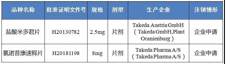 医药网12月13日讯 12月12日,国家药监局官网发布公告称,根据《中华人民共和国药品管理法实施条例》和《药品注册管理办法》的有关规定,国家药品监督管理局决定注销盐酸米多君片等2个药品批准证明文件。 注销药品批准证明文件目录