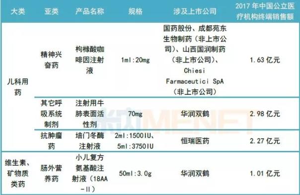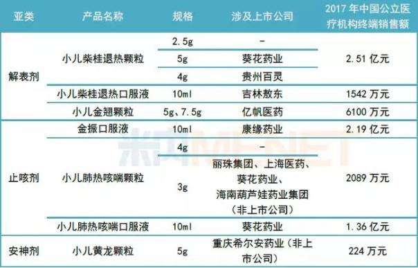 医药网11月20日讯 近段时间,国家药监局陆续对一批常用药品进行说明书的修订,大多数都有涉及到儿童慎用或禁用的内容,其中包括了柴胡注射剂、参麦注射剂、清开灵注射液、天麻素注射液、呋喃唑酮片、复方磷酸可待因溶液、感冒清片……家长和医生一方面认为国家对于药品的监管越来越严格、越来越规范,一方面也担心小孩生病后可以选用的药物会变得越来越少。 2018版基药目录专门整理出了儿科用药这个大类,其中,中成药儿科用药17个,化学药品和生物制品儿科用药3个,再加上维生素、矿物质类药中的小儿复方氨基酸注射液(18AA -Ⅰ)以及小儿复方氨基酸注射液(18AA -Ⅱ),新基药目录合共有22个儿童药可供选择。 新增7个儿科中成药,葵花药业成大赢家 表1:2018版基药目录新增的7个儿科中成药 (来源:米内网数据库) 2018版基药目录涉及的儿科中成药共17个(按“通用名+剂型”计算),包括了解表剂6个,止咳剂5个,扶正剂2个,消导剂2个,安神剂1个,清热剂1个。其中,新增产品有7个。 据米内网数据显示,7个新增的儿科中成药中,独家产品有小儿柴桂退热口服液、小儿金翘颗粒、金振口服液、小儿肺热咳喘口服液以及小儿黄龙颗粒。 7个新增的儿科中成药,2017年在中国城市公立医院、县级公立医院、城市社区中心及乡镇卫生院(简称中国公立医疗机构)终端销售额过亿的产品有小儿柴桂退热颗粒、金振口服液以及小儿肺热咳喘口服液。 从上市公司来看,新增的儿科中成药中有3个为葵花药业的产品,小儿肺热咳喘口服液是葵花药业的黄金大单品,主要销售市场在中国城市零售药店终端,2017年销售额2.4亿元;小儿肺热咳喘颗粒的主要销售额市场也在中国城市零售药店终端,2017年销售额1.29亿元;小儿柴桂退热颗粒2017年在中国公立医疗机构终端销售额为1.98亿元,在中国城市零售药店终端销售额为7637万元。葵花药业的儿童药在零售市场的突出成绩,也为产品进入新基药目录提升了实力。 葵花药业在2018年半年报中提到,小儿肺热咳喘口服液增加适应症的研究项目正在有序开展,在原适应症的基础上开展了拟增加治疗支原体肺炎适应症的药效学试验研究。 新增3个儿科化药及1个肠外营养药,恒瑞独家抗肿瘤药入选 表2:2018版基药目录新增的4个儿童化药 (来源:米内网数据库) 2018版基药目录涉及的儿童化药有5个,其中3个为儿科用药,2个为维生素、矿物质类药。 新增产品有4个,均为注射剂,除了小儿复方氨基酸注射液(18AA -Ⅱ)外,其余3个产品应在具备相应处方资质的医师或在专科医师指导下使用并加强使用监测和评价。上述4个产品2017年在中国公立医疗机构终端的销售额均破亿元。 华润双鹤有两个重磅产品入选,注射用牛肺表面活性剂是该公司的独家产品,也是治疗新生儿呼吸窘迫的PS制剂中的领军产品之一;在2012版基药目录中,华润双鹤的小儿复方氨基酸注射液(18AA-Ⅰ)继续在新版基药目录中保留,同时还新增了小儿复方氨基酸注射液(18AA -Ⅱ),作为儿童用的肠外营养药,华润双鹤的品牌也是非常具有优势的。 图1:2013-2017年中国公立医疗机构终端培门冬酶注射液的销售情况(单位:万元) (来源:米内网中国公立医疗机构终端竞争格局) 恒瑞医药抗肿瘤药培门冬酶注射液是新增的儿科化药。2018年10月10日,国家医疗保障局发布通知,将17种抗癌药正式纳入国家医保报销目录,其中就包括了培门冬酶注射液。该产品适用于急性淋巴细胞白血病(ALL),可用于儿童急性淋巴细胞白血病患者一线治疗。最近几年,培门冬酶注射液在中国公立医疗机构终端销售额均破亿元,2017年的增长率为22.92%。 支持中医药发展,2018年7个儿科新药申请临床或上市 《国家基本药物目录管理办法》(国卫药政发〔2015〕52号)明确规定,遴选国家基本药物时,要坚持中西药并重。据悉,新基药目录调整工作方案确定的调整原则也明确要支持中医药事业发展。从新增的儿童药数量来看,中成药的占比接近64%。 表3:2018年申请临床或上市的儿科中成药 (来源:MED中国药品审评数据库2.0) 据米内网数据显示,截至2018年11月19日,今年已有山西振东金晶制药的小儿咳喘灵泡腾片获批生产。目前市场上的小儿咳喘灵泡腾片生产企业为步长制药子公司辽宁奥达制药,2017年在中国公立医疗机构终端的销售额为5355万元。 此外,小儿化积颗粒、小儿麻龙止咳平喘颗粒、苏苏小儿止咳颗粒、小儿豉翘清热糖浆均已获批临床,止动颗粒以及小儿肺咳口服液正在审评审批中。 从上述提交申请的企业来看,除了专注儿童药生产的企业海南葫芦娃药业集团以外,一些大型药企如济川药业集团、天士力医药集团、天圣制药集团等,在产品开发时都将目光拓展至儿童药领域,在政府部门以及企业的共同努力下,我国儿童药市场的发展将会朝着更有效、高质量的方向前进。 资料来源:米内网数据库