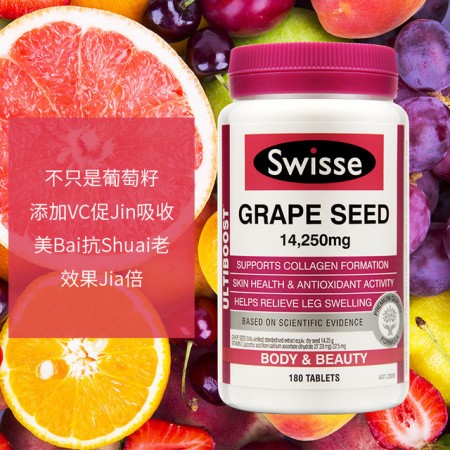 当葡萄籽的有效成分被挖掘出来之后,市面上出现了各种不同关于葡萄籽的保健产品,而Swiss葡萄籽精华片是一个在国内外知名度都比较高的产品,只有正规的、大型的应用商城才有卖,其价格不是非常昂贵,目前一盒180粒*瓶的Swiss葡萄籽精华片价格是169元左右。Swiss葡萄籽精华片的主要成份包括了葡萄籽提取物、维生素C、血橙,让本产品不仅仅具备了葡萄籽本身的功能,与维生素C和血橙的完美配合,在改善肌肤状态和改善体质上面有着更加明显的作用。