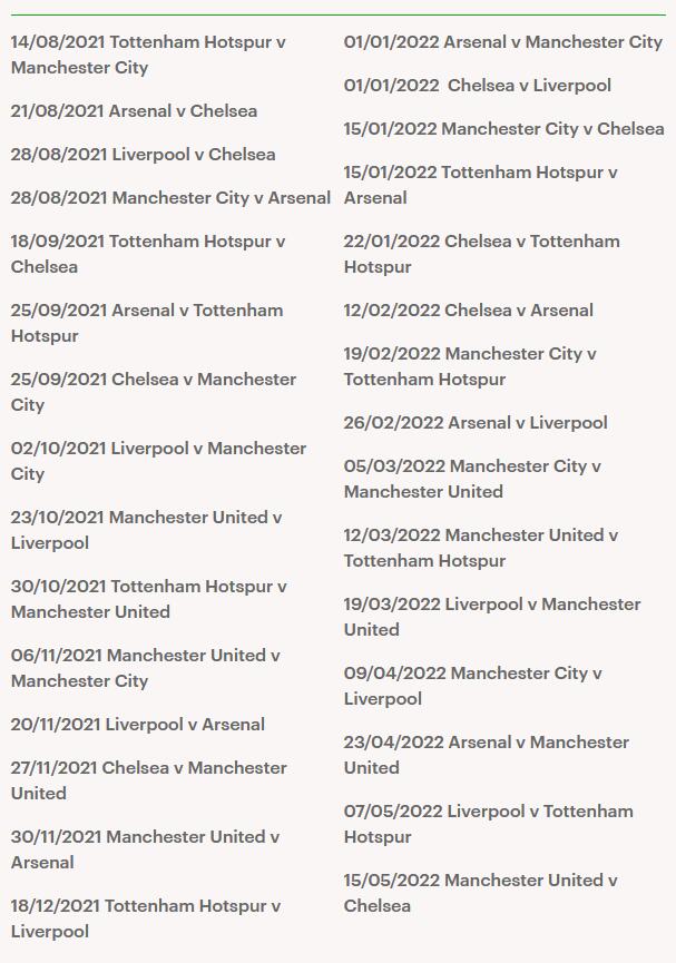 英超官方公布了2021-22赛季英超联赛的赛程。
