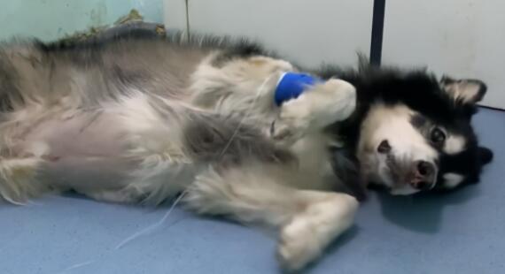 “2015年12月6号捡的,在宠物医院门口,今年刚给它过完六岁的生日。从发现到走就一个多星期,检查发现它的肝脏上长满了肿瘤。后来腹水充血了,意识有点模糊。”
