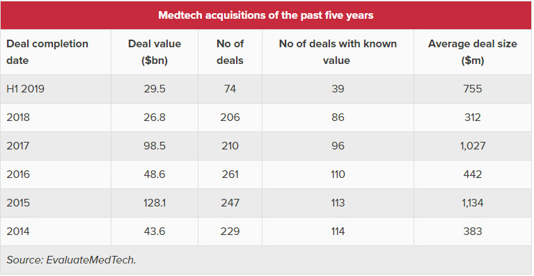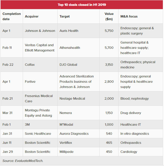 核心提示:医药炒作招商网7月10日讯 2019年虽然刚刚过半,然而医疗器械领域的并购(M&A)价值已经超过2018年的M&A总额。今年到目前为止,已经完成的M&A价值超过295亿美元,其中强生收购外科手术机器人Auris Health以及医疗记录公司Athenahealth出售给私募基金,这两笔M&A的价值均超过50亿美元。